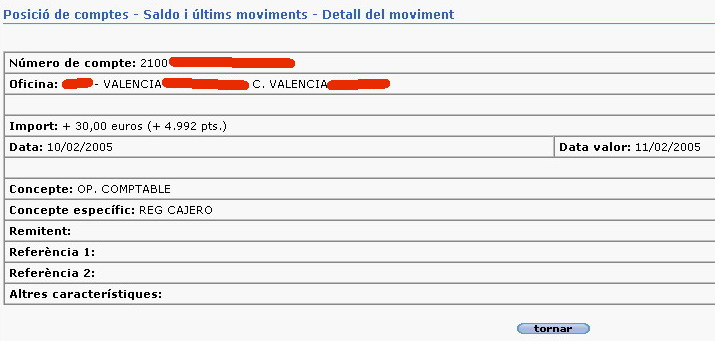 Hasta que ayer (lunes) miro el extracto de mi cuenta por Internet y observo que al día siguiente me reintegraron el dinero que me olvide coger!!!